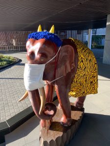 昨年末、クリスマス仕様の象さんが好評でしたので 今回は節分・マスク仕様の象さんに衣装チェンジ致しました。
